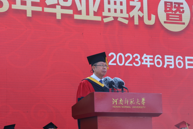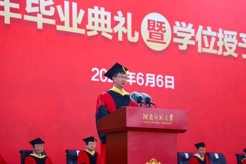 润物无声育桃李,春风化雨见真情。教师代表、外国语学院张军民在发言中激励全体毕业生,持续涵养家国情怀、投身强国伟业,厚植奋斗基因、不负师大精神,严守人生底线,砥砺卓越品格,不断创造精彩人生。