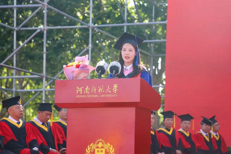 少年负壮气,奋烈自有时。研究生毕业生代表、政治与公共管理学院柴琳琳,本科毕业生代表、历史文化学院孙若曦先后发言,真诚表达了对母校和师长的感恩,共同诠释了“厚德博学、止于至善”的校训精神,愿以更加奋斗的姿态,踔厉奋发,勇毅前行,不负美好新时代,助力师大新百年!