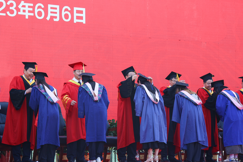 “点燃青春的火炬,开启智慧的宝藏,背负民族的希望,谱写人生的华章……”在热情豪迈的校歌声中,2023年毕业典礼暨学位授予仪式圆满礼成。