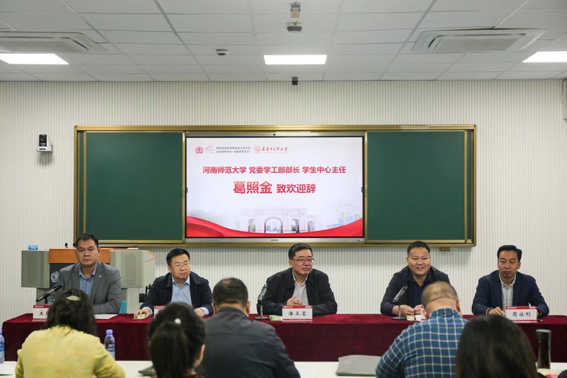 葛照金致欢迎辞,他简要介绍了我校百年办学历史,学科发展情况,服务地方经济社会成就和科技创新港建设情况。结合本次“学思想·育新人”辅导员培训班主题,他重点介绍了学生工作“一风三品牌”建设情况。学风建设有成效,“学在师大·心系国家”的品牌叫得更响,2023届一本专业平均升学率为35.072%,再创历史新高。品牌建设有亮点,开发了“智慧学工”系统,学生管理更精准、更便捷、更高效;实施“青春导航员”计划,让优秀的本专业高年级学生成为刚入校新生的朋辈导师;抓好“会师星期一”学生工作队伍进一线活动,让辅导员更贴近学生,在2023年被评为“河南省高校学生工作优秀成果”一等奖。