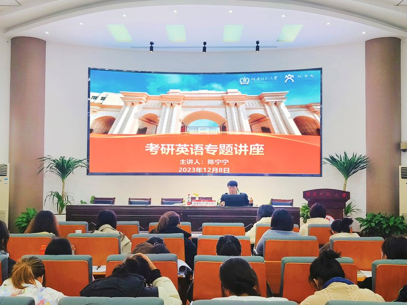 2024年全国硕士研究生招生考试初试进入倒计时阶段,为了提升同学们考研英语的应试技巧,更好地掌握考研英语科目备考方法,12月8日上午,文学院于报告厅举行考研英语专项辅导。此次辅导邀请到了外国语学院陈宁宁老师作为主讲人,文学院2020级考研学生、2021级备考学生参与了本次考研英语辅导。