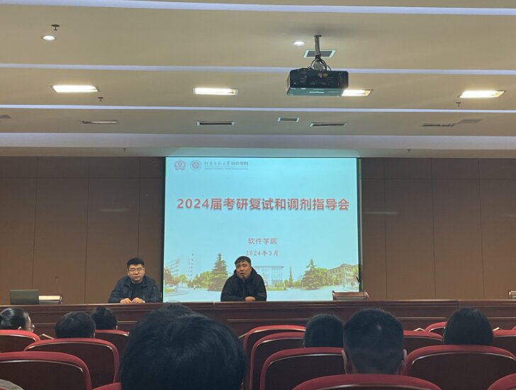 为了更好地服务考研学子作好复试、调剂,提升学院毕业生工作质量,3月18日下午,软件学院于平原湖校区2号报告厅举办2024届考研复试和调剂指导会。会议由2020级辅导员王伟伟主持,学院相关负责人及2024届考研学生共200余人参加。