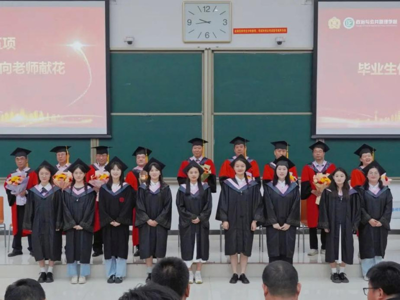 会议伊始,王秀杰对即将毕业的学生们表示热烈的祝贺,回顾了毕业生们在学院度过的青春岁月,肯定了他们在学习、实践中的突出表现。她希望大家能始终把学院作为自己强大的依靠、温暖的港湾,以荣校、荣院的集体主义精神和踔厉奋发、笃行不怠的拼搏态度,为自己创造出更美好的明天。随后,教师代表依次进行发言,他们嘱托无论大家以后身在何方,都要做好自己的本职工作并保持学习;鼓励大家在未来的道路上继续保持初心,勇敢追求梦想;并用毛泽东同志的诗词勉励毕业生,“雄关漫道真如铁,而今迈步从头越”的慷慨激昂激励着每一个学子。毕业班辅导员薄一凡为同学们送上了深情的寄语,他鼓励大家要保持积极向上的心态,勇敢面对未来的挑战和机遇。最后,老师们依次为大家发放学院精心准备的毕业礼物和蛋糕,这一温暖举动不仅代表了学院对毕业生们的关爱和祝福,也寓意着毕业生们即将踏上新的人生旅程,开启新的篇章。