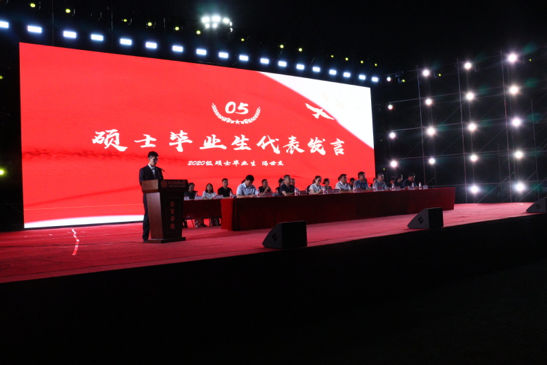 毕业研究生代表朱诗晴,毕业本科生代表毕润佳,在校生代表李亚鑫三人分别发言,诚挚表达了对学校、领导以及老师崇高的敬意与感谢,并表示将永远铭记“厚德博学,止于至善”的校训,坚定理想信念,强化使命担当,带着母校的谆谆教诲将责任外化于行,积极投身到中国特色社会主义伟大事业当中,在奋斗中创造精彩。