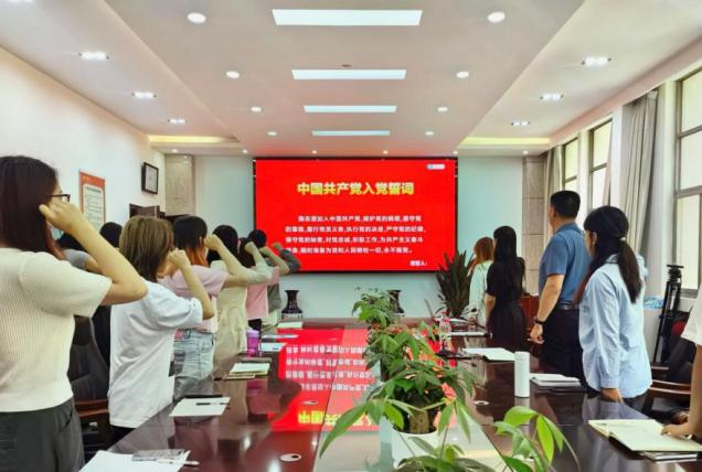 最后全体党员庄严宣誓,重温入党誓词,签订党员离校承诺书。