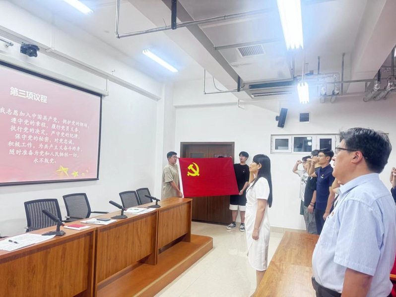 2021级研究生李满煜、2020级本科生赵甜甜分别代表毕业生党员发言,他们表示将不负党组织嘱托,不忘初心,砥砺前行,在今后的人生征途中努力为党旗增光、为学校添彩。2021级研究生党员、校级优秀毕业研究生陈晶同志领誓,全体参会人员重温入党誓词。会上,为全体毕业生党员发放了《中国共产党章程》。