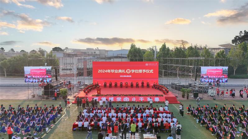 6月6日清晨,日出东方,我校2024年毕业典礼暨学位授予仪式在东区操场隆重举行。校领导,相关职能部门负责人,各学院(部)院长(书记)、副书记,教师代表,毕业班辅导员,校友、家长代表,共同见证2024届毕业生开启人生新旅程的美好时刻。典礼由校党委常委、副校长聂国兴主持。