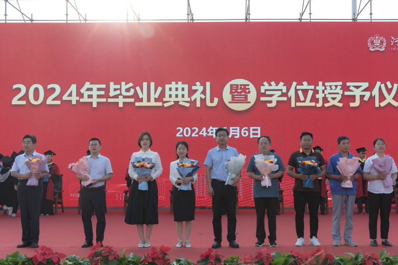 毕业生代表为教师代表,服务保障人员代表,与会领导、嘉宾和老师们敬献鲜花
