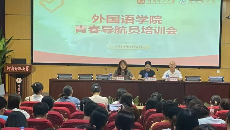 9月5日晚上,外国语学院在学院报告厅举办青春导航员培训会,各年级辅导员及百余名导航员参加本次会议。