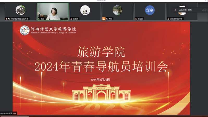为确保迎新工作有序开展,“青春导航员”计划落实落细,8月26日上午,旅游学院2024级新生“青春导航员”培训会议在线上举行。旅游学院党委副书记翟方、各年级辅导员出席,120名青春导航员参加培训。会议由2023级辅导员黄昭主持。