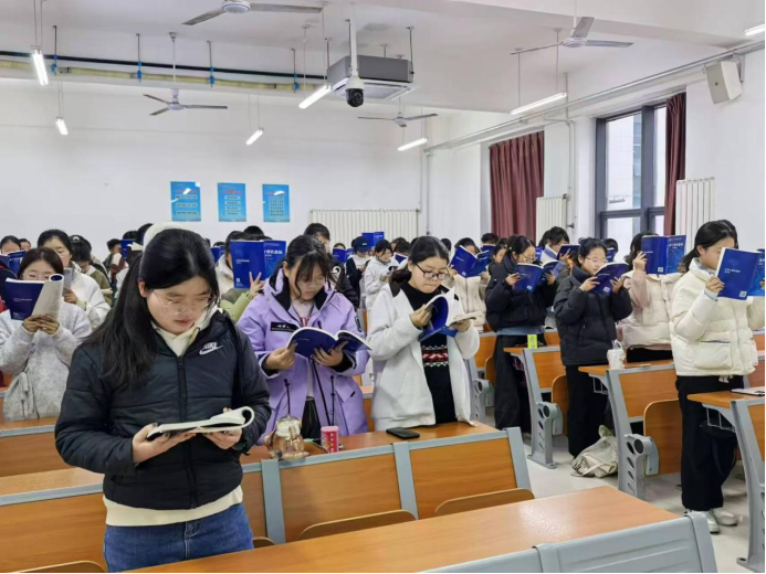 其二,是对即将推行的晨读计划进行展望与启动。颁奖结束后冯家欣老师宣布晨读计划开启,并积极鼓励更多同学参与其中。晨读对于同学们的学习有着诸多益处。希望文学院2024级的同学们在接下来的日子里,充分利用早晨的时间全力复习备考,力求在期末考试中取得理想的成绩。未来,文学院将持续加强“德智体美劳”方面的全面建设,创新“晨光30分”活动形式,助力同学们健康成长,为自身的成长与发展奠定坚实的基础。