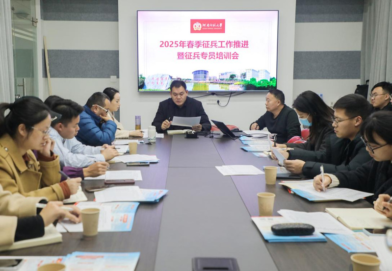 11月22日下午,我校2025年春季征兵工作推进暨征兵专员培训会在致远楼424会议室举行。党委学工部副部长赵焕兴、各院(部)征兵专员、党委学工部和人民武装部相关工作人员参加会议,会议由国防动员中心主任王姗姗主持。