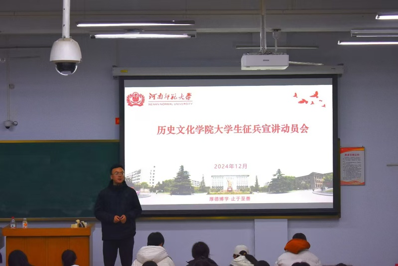 为积极响应国家征兵号召,鼓励大学生投身国防事业,12月5日下午,历史文化学院在新554开展征兵宣讲活动。本次活动由历史文化学院征兵专员庞振康主讲,历史文化学院本科生共同参与。