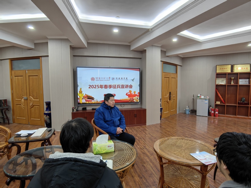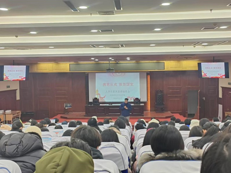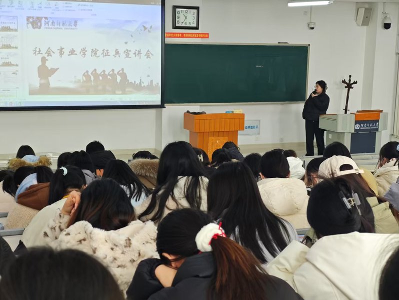 为鼓励和引导学院学生积极响应祖国号召,投身军营、献身国防,12月27日上午,社会事业学院于文昌楼403教室召开了2025届春季征兵宣讲会。会议由社会事业学院专职辅导员韩雅冰主持,2021级全体本科生参加此次会议。