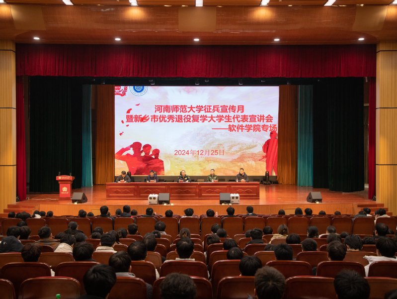 为积极响应国家征兵号召,激发广大青年参军入伍的热情,伟德官网下载苹果版“征兵宣传月”软件学院专场暨新乡市优秀退役复学大学生代表宣讲会于2024年12月25日在平原湖校区一号报告厅举行。新乡军分区、牧野区武装部、伟德官网下载苹果版学工部、武装部,软件学院党政领导及毕业生辅导员老师,毕业班学生代表参加这次宣讲会,党委副书记原方主持会议。