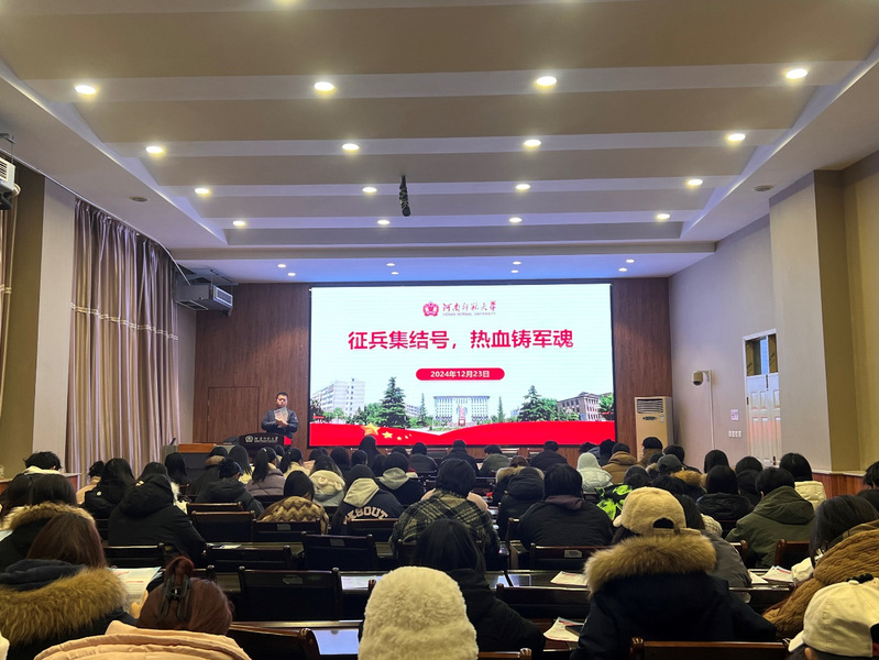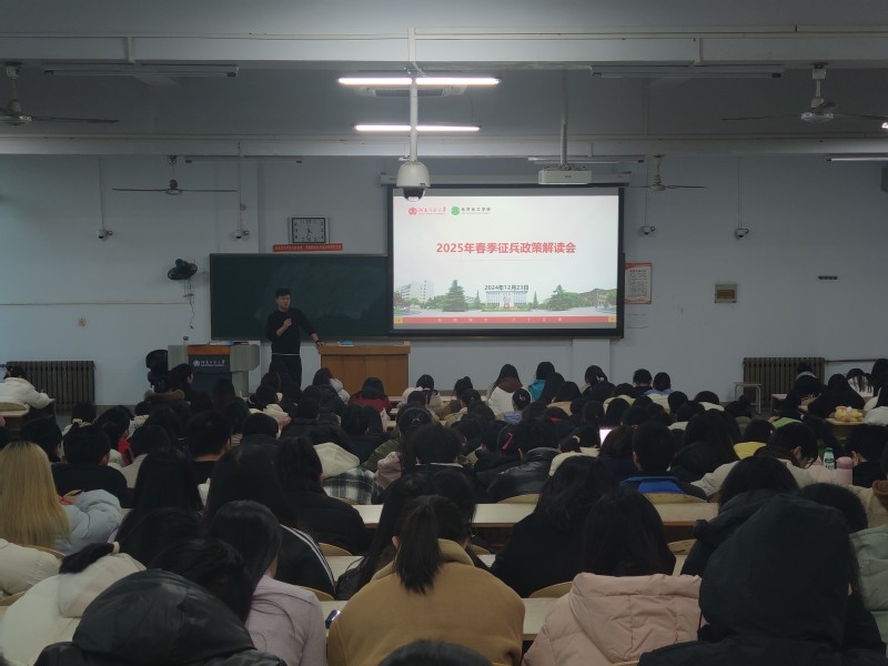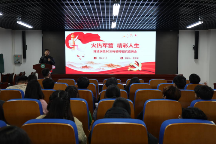 为响应国家号召,切实做好大学生征兵宣传工作,激励广大适龄青年入伍,为军队输送高质量人才。12月23日下午,环境学院在实训楼1509报告厅召开2025年春季征兵政策宣讲会,环境学院2025届全体毕业生及其他年级意愿入伍学生参会。