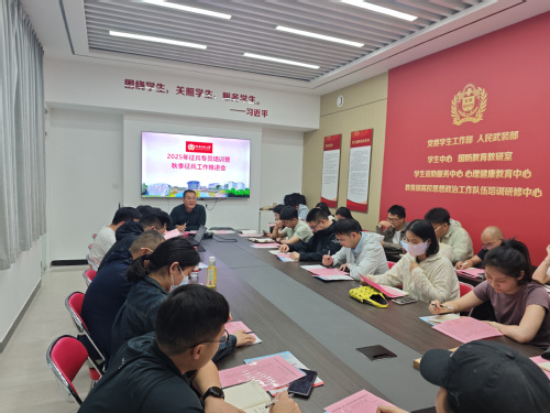 5月9日下午,我校2025年秋季征兵工作推进暨征兵专员培训会在致远楼424会议室举行。党委学工部副部长赵焕兴、各院(部)征兵专员、党委学工部和人民武装部相关工作人员参加会议,会议由武装部国防动员中心主任王姗姗主持。