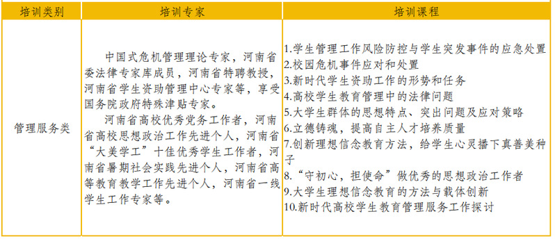 河南省普通高等学校学生工作校级领导培训班