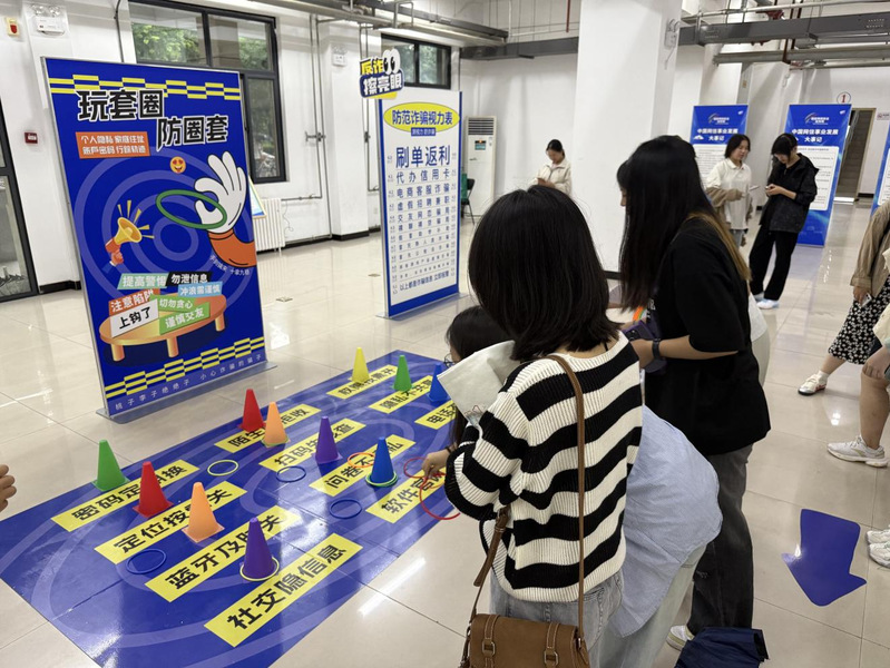 同学们有序来到致远楼一楼展厅,阅读内容丰富、案例生动的反诈知识展板,并通过参与“玩套圈 防圈套”、“幸运转转转”等小游戏,在轻松愉快的氛围中深入了解刷单诈骗、网络借贷、冒充客服等常见诈骗手法。现场气氛热烈,同学们踊跃参与,成功完成游戏的同学还获得丰厚小礼品。这种“寓教于乐”的方式,让反诈知识不再是枯燥的说教,而是真正入脑入心,有效提升了同学们的自我保护能力。