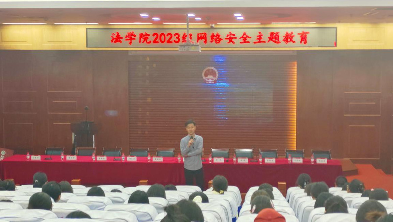 为提升学生防范电信诈骗能力,切实保障人身财产安全,9月17日,法学院于模拟法庭开展网络安全主题教育。活动由我校反诈先锋团成员梁馨元主讲,院团委书记陈宇翔主持。