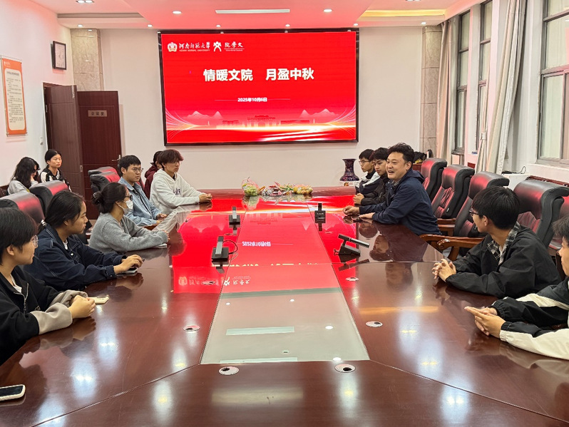 在中秋与国庆双节交汇的美好时节,为缓解留校学生的思乡之情,文学院于10月6日在学院二楼会议室精心策划并开展了以“情满文院,月盈中秋”为主题的师生茶话会活动。此次活动旨在通过轻松愉快的交流形式,邀请留校学生欢聚一堂,共庆佳节、共话家国,让他们在集体的温暖中感受别样的团圆之情。