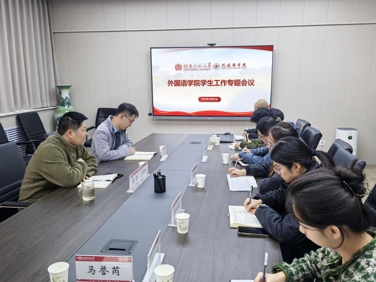 为落实立德树人根本目标,推动学院学生工作高质量发展,外国语学院于10月23日在学院A306会议室召开学生工作专题会议。本次会议由学院党委书记吴耀武、党委副书记曹崇、各年级专兼职辅导员参加。会议由党委副书记曹崇主持。