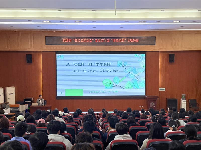 10月25日上午,教育学部在求是中楼302教室举办“博雅师承”系列主题讲座。讲座特邀全国优秀教师、河南省实验小学年级长苏霞担任主讲人,讲座由教育学部党委副书记康淑霞主持,共200余名师范生参加。