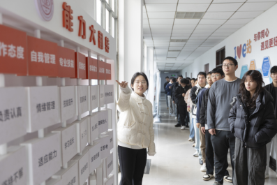 活动伊始,同学们在辅导员的引导下,先后参观了职美工作室和职心工作室。在职美工作室,侯梦瑶为同学们带来了精彩的MBTI人格类型讲解。她用生动浅显的语言阐述了16种人格类型的特征、优势以及潜在的职业倾向,让同学们对自身的性格特质、行为风格以及在团队中可能扮演的角色有了更为清晰的认识。“能力大翻转”体验环节巧妙设计了多种职场情境,刘怡琳通过引导同学们进行能力翻转游戏,提高了大家对“全局把握”“换位思考”“信息收集”等不同能力的掌握度。现场互动频频,反响热烈。2025级计算机科学与技术(创新实验班)专业的周武昊同学表示:“这次活动就像一面镜子,让我明白了各种能力在职场中的价值,也照出自身的短板和不足,对接下来的学习和工作都有很大的指导意义。”