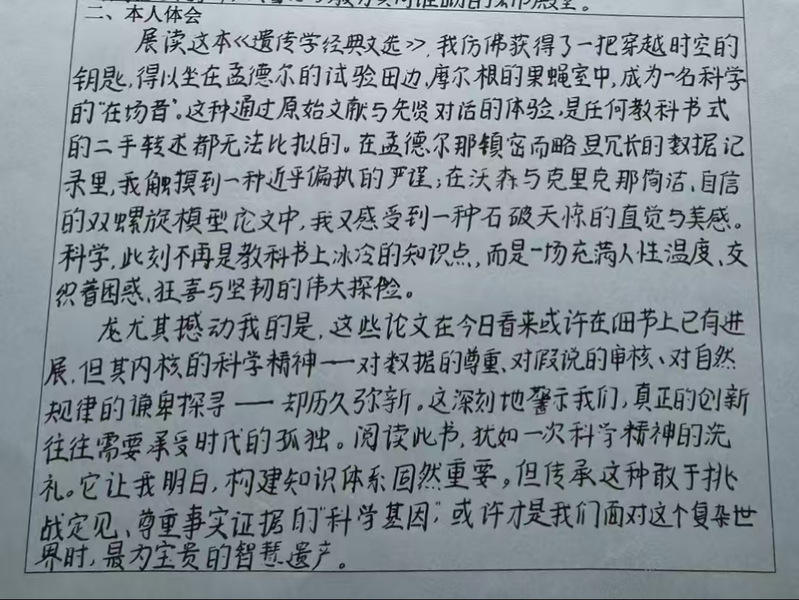 活动伊始,学院结合第二课堂“阅读六十本经典”培养要求,精心筛选出《红日》《我们为什么生病》《中国通史》等涵盖文学、科普、历史、哲学的经典书目,为不同专业背景的学生提供多元阅读选择。活动负责人通过班级群通知的形式,向同学们详细解读活动意义、阅读要求与读后感提交规范,充分调动同学们的参与积极性。活动过程中,线上“感悟提交”专区成为核心交流阵地,同学们围绕选定经典书目,以读后感为主要载体,将专业知识与书籍内容深度融合,多角度解读书中内涵。学生们在分享中的畅谈思想启迪、情感共鸣与知识收获,形成读、思、悟、想的良好氛围。活动结束后,同学们纷纷表示不仅在课余时间能够充实自我、真切体验到文化魅力,更在经典书籍的浸润中拓宽知识视野、涵养人文情怀。