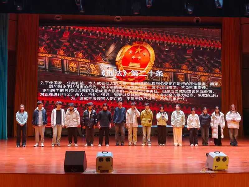 活动现场,参赛团队凭借精巧的剧本构思、真挚的舞台演绎,将抽象晦涩的法律条文转化为贴近生活、引人深思的鲜活故事。参赛作品主题鲜明、紧扣时代脉搏,既聚焦社会热点,又贴合校园生活:《合租里的“隐形陷阱”》聚焦消费权益保护,犀利揭露日常生活中的法律风险,引导大家学会依法维权;《“码”住的秘密》回应现实,强调了数字化生存中应有的法治底线与责任担当;《“乡”亲“邻”爱》则从人情伦理切入,温情诠释法律在化解矛盾、构建和谐社群中的基石作用。比赛中,演员们全情投入,角色塑造饱满立体,对白自然流畅,配合精心准备的道具与多媒体辅助,让每一部剧目都极具感染力与代入感。同学们在编、排、演、观的全过程中,切身感受到法律的庄严权威与人文温度。