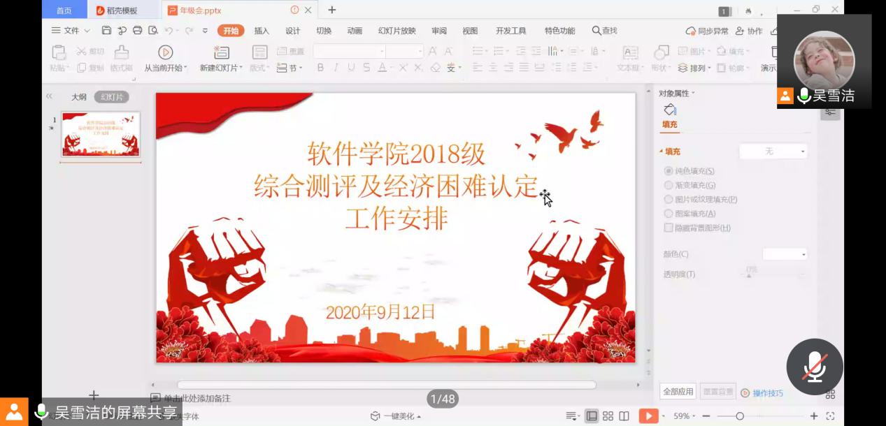 2020年9月12日下午五点,软件学院2018级于计科楼318教室召开了年级工作会,由李淳老师和陈佳鲜老师主持。为了减少学生的大量聚集,本次会议采用线上和线下两种方式进行。