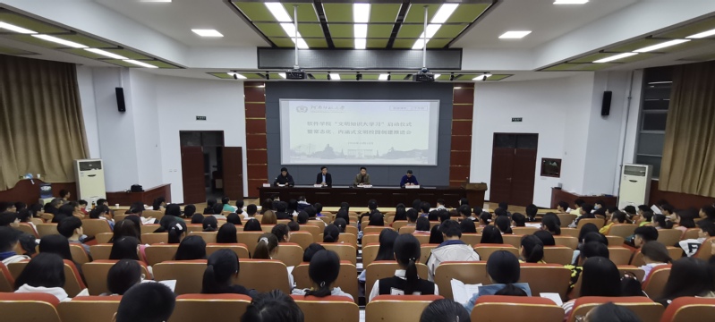 10月18日晚,软件学院“文明知识大学习”启动仪式暨常态化、内涵式文明校园创建工作推进会在计科楼217报告厅举行。学院相关负责人出席,各年级辅导员及学生代表200余人参加。会议由副书记张东亮主持。
