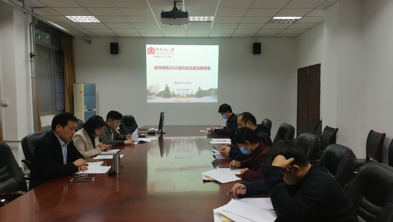 为进一步做好2020届毕业生就业工作,落实学校关于就业工作的部署,推动毕业生顺利就业,11月3日下午,软件学院在学院103会议室召开2020届毕业生就业工作推进会。学院党政负责人,全体辅导员及部分专业老师参加会议。会议邀请就业创业指导服务中心相关负责人进行了就业政策辅导培训。会议由学院党总支书记张合主持。