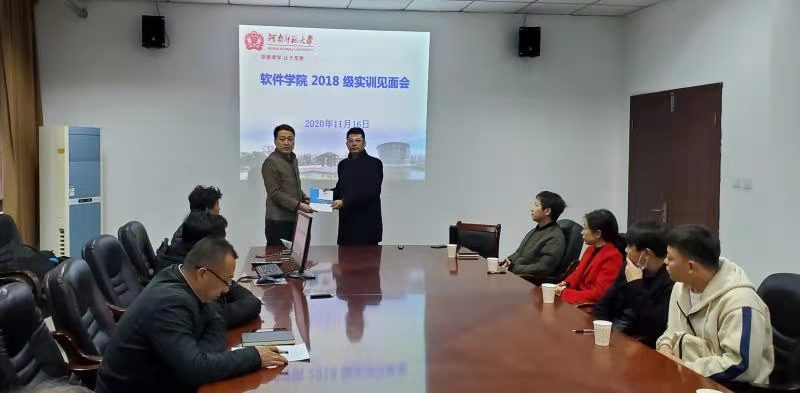 1116日上午,学院在103会议室举行实训教师见面会。学院党总支书记张合对企业实训教师表示欢迎,介绍了通过“产教融合、引企入教”推进人才培养模式改革的情况。他强调,从签订合作框架协议开始,学院就已经与企业结成了育人共同体、创新共同体、发展共同体参加实训教学的老师要坚持社会主义办学方向,遵守新时代高校教师职业行为准则,增强责任意识和使命意识,用“四有”好老师的标准要求自己,圆满完成实训教学任务,努力培养高水平创新型应用型软件人才,为实现软件自主可控提供可靠人才支撑。学院党总支副书记苗山根带领与会人员学习了《新时代高校教师职业行为十项准则》,副院长段德全就实训教学工作进行了详细部署。