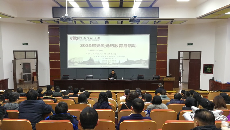为强化全体党员干部纪律意识和廉洁意识,扎实推进党风党纪教育月活动,12月1日下午,计算机与信息工程学院、软件学院在学院217报告厅举行党风党纪教育活动,学院领导班子成员以及全体教职工参加了会议,会议由软件学院党总支书记张合主持。