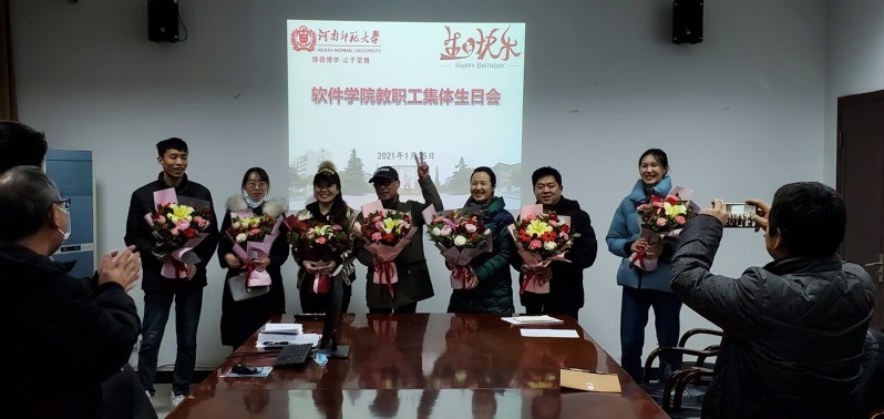 学院副院长王川代表学院致生日贺辞,他向生日教师们表示诚挚的祝福,感谢各位教师为学院事业发展做出的重要贡献。随后,伴随着熟悉的旋律,与会教师齐唱生日快乐歌,学院领导为生日教师们送上鲜花表示祝福。大家纷纷表示,感谢学院的精心安排和贴心服务,在今后的工作与生活中,一定立足岗位,脚踏实地,不断提升自身能力,为学院发展添砖加瓦。学院党总支书记张合做总结发言。他指出,在软件学院大家庭中,既有“60后”、“70后”的杰出代表,也有“80后”、“90后”的优秀骨干,全体教职工要时刻保持一颗感恩的心,既要感恩家人的默默付出,更要感恩组织的关心和培养。他希望,大家能更融入、更爱护、更珍惜学院的已有成绩,时刻牢记身份,铭记育人使命,学深悟透习近平总书记关于教育的重要论述精神,在平凡的岗位上做到不平凡,以优异的成绩向建党100周年献礼。
