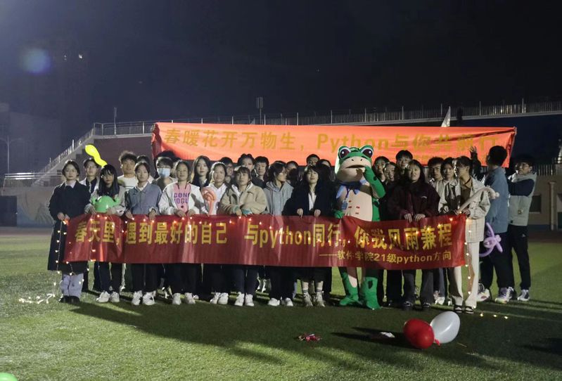 随着冬日的离去,大地万物复苏,校园里洋溢着同学们青春的笑脸。为加强同学们的大学生活体验,丰富校园生活,促进同学们之间的交流与沟通,并提高同学们参与班级建设的积极性。4月6日晚,软件学院2021级计算机科学与技术(Python方向)以班级为单位在向真楼212教室及平原湖校区操场开展了“青春不散场,快乐不打烊”——主题团建活动。Python方向全体同学积极参与活动,并邀请辅导员李娟老师出席活动。