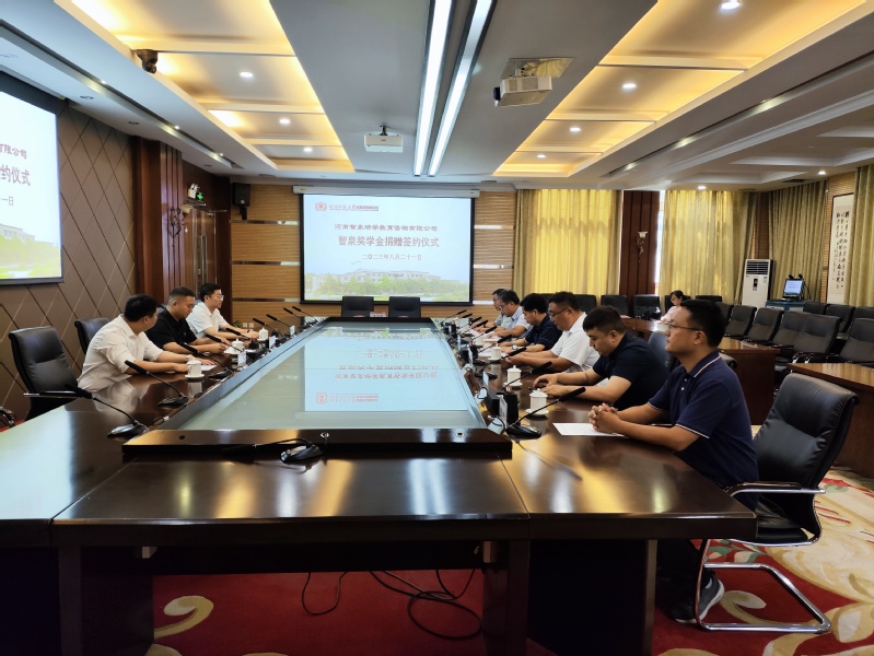 8月21日上午,“智泉奖学金”捐赠签约仪式在勤政楼第三会议室举行。软件学院2014级校友、河南智泉研学教育咨询有限公司总经理王詹杰,校党委常委、副校长刘玉芳出席仪式,校友与基金工作办公室和软件学院相关负责人,河南智泉研学教育咨询有限公司高管、教师代表和校友与基金工作办公室全体工作人员参加捐赠签约仪式。仪式由校友与基金工作办公室主任苏现伐主持。