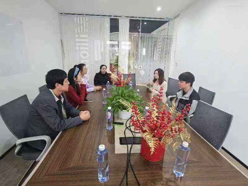 会后,袁培燕一行参观了实习生的工作场所,深入了解了学生在实习期间的工作、生活、安全情况,同时转达了学院领导对全体实习学生的关怀。鼓励他们充分珍惜和利用实习机会,了解行业需求,拓宽眼界格局,不断提升自身专业实践能力和综合素养。并与实习生亲切交流,他强调,一要摆正心态,尽快调整并适应新角色,认真完成专业实习任务。二要虚心请教,不断向有经验的同事、领导学习。三要勇于挑战,在工作中遇到困难要想方设法尝试去克服和解决。