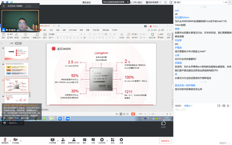 为贯彻国家信息化建设,产教融合发展战略,衔接第一课堂和第二课堂,将线上和线下教学相融合,让学生充分了解行业需求,认知专业方向和就业趋势,软件学院开展“博约企业讲堂系列”线上活动。4月9日上午进行了第三场线上讲座——“自主CPU产业体系建设之路”。由中国科学院计算技术研究所正高工、博士生导师、龙芯中科技术有限公司技术总监张福新担任主讲,软件学院相关负责教师、软件学院2020级、2021级全体学生聆听了讲座,讲座由软件学院实习实训办公室主任刘金金主持。