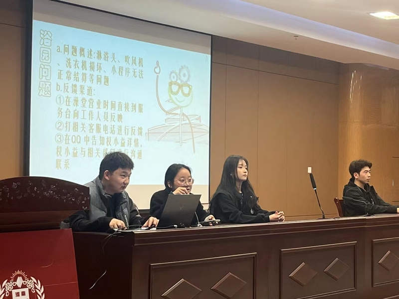 会议伊始,院权益服务部成员张登科详细介绍了“权小益”在学院内的工作职责,针对同学们线上反映的教室桌凳和窗户的损坏等常见问题,提出了维修更换、巡查维护等解决方案,得到了同学们的积极回应。随后,院权益服务部成员刘宇轩向大家普及315消费者权益维护的相关知识,引导同学们深入了解《中国消费者权益保护法》等相关法律法规,提高他们依法维权的意识。最后,张登科结合典型案例,为大家讲述了在消费过程中应享有的各项权利及维权的途径和方式,例如协商和解、拨打12315电话、仲裁协议等维权途径,使同学们对如何有效维护自己合法权益有了更全面的认识。