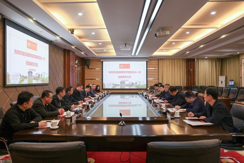 聂国兴对杜记民一行表示热烈欢迎,他简要介绍了学校的办学历史、近年来事业发展取得成就、科技创新港建设和现代工学院建设等基本情况,并介绍了软件学院产教融合的培养模式和创新举措。聂国兴表示,经过百年发展,师大形成了“跳出师大办师大,跳出教育办教育”的理念共识,坚定不移走交叉融合、协同创新、重点突破的“双一流”创建之路,取得一系列丰硕成果,为河南省经济社会发展作出了应有贡献。在新一轮科技革命和产业变革交织的大背景下,希望学校和安阳师范学院加强交流、携手并进,主动面向产业前沿和重点产业链需求,以深化产科教融合为抓手,不断探索人才培养模式创新,为推进中国式现代化河南实践提供有力的人才支撑。