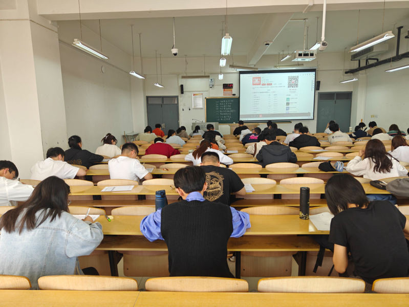 为使学生熟悉考试流程,本次考试严格按照大学英语四级考试流程和考试时间,启用教室多媒体设备播放听力材料,并使用与考试相同的答题卡,让学生置身于真实的考场环境,积累经验、查漏补缺。考试过程中,部分入党积极分子担任考试志愿者,负责核验身份、发放试卷和维持考场秩序,同学们专心作答,严格遵循考场纪律,考试氛围良好。