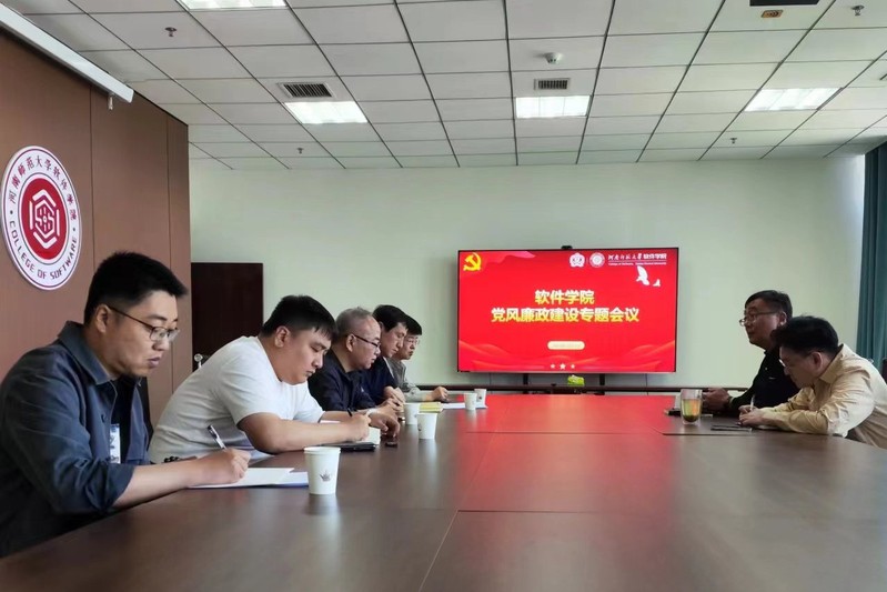 4月23日上午,软件学院在平原湖校区第三会议室召开党风廉政建设专题会议,学院全体领导班子成员参加会议。会议由学院党委书记马新峰主持。