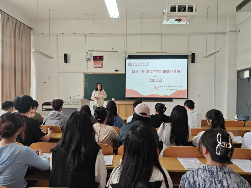 4月29日,软件学院本科生第十二党支部在平原湖校区第三会议室,开展《中国共产党纪律处分条例》的党纪学习教育。会议由党支部书记李帅洪主持,支部全体党员参加。