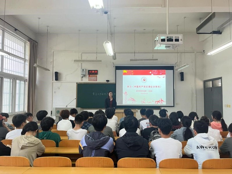 4月29日上午,软件学院本科生第十党支部在平原湖校区向学楼204教室召开党纪学习教育支部集中学习会,认真学习领会、贯彻落实新修订的《中国共产党纪律处分条例》,切实推动支部党员同志不断学纪、知纪、明纪、守纪。