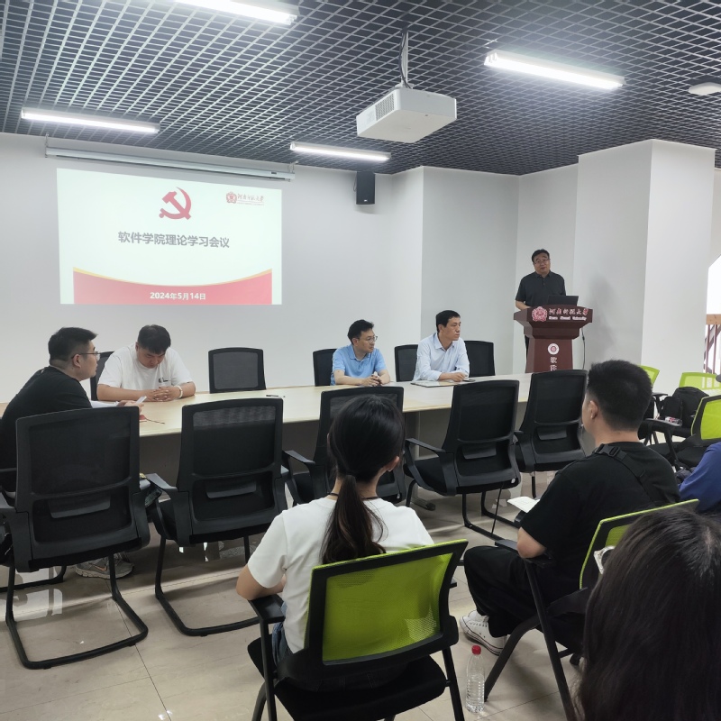 5月14日下午,软件学院在实训楼413会议室召开教职工理论学习会议,学院领导班子和全体教职工参加,会议由学院党委书记马新峰主持。