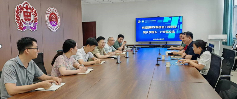 近日,邯郸学院信息工程学院院长李国玉一行来我院交流。软件学院院长王川,副院长夏亮、段德全等班子成员参加座谈。座谈会在平原湖校区第三会议室召开,由院长王川主持。