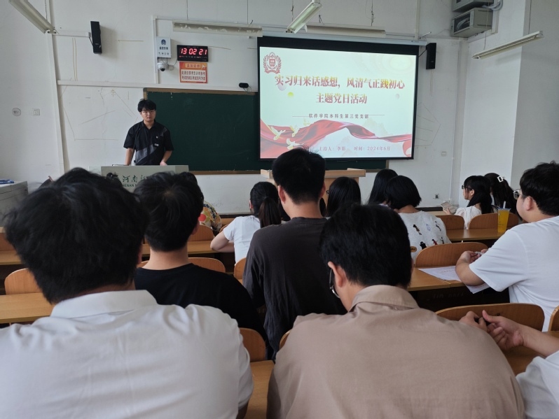 为进一步巩固拓展学习贯彻习近平新时代中国特色社会主义思想主题教育成果,深化“基层党组织建设年”活动成效,增强支部政治功能和组织功能。2024年6月28日,软件学院本科生第三党支部在向知楼212召开“实习归来话感想,风清气正践初心”主题党日活动。此次活动不仅为学生党员们搭建了一个思想交流与经验分享的平台,更是一次对初心使命的深刻感悟与坚定承诺。