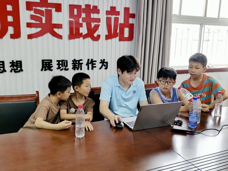 随后,团队为孩子们带来精彩有趣的儿童编程课。团队成员们用通俗易懂的语言和有趣的互动游戏介绍编程基本概念与操作方法。孩子们积极参与、动手实践,发挥想象与创造力,既学到了新知识技能,又知晓了小程序背后的代码奥秘。